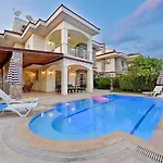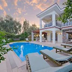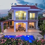 Von einer Terrasse der Villa in Fethiye aus können Gäste einen Ausblick auf den Pool genießen. Die Villa verfügt über ein Badezimmer mit einer Badewanne, einer getrennten Toilette und einer Dusche. Die Badezimmer sind zudem mit einem Haartrockner und Handtüchern für Ihren Komfort ausgestattet.